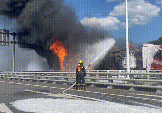 漳州大貨車自燃7月7日15時08分,漳州市高新區沿山大道427界線,有一輛大貨車突發自燃。高新區消防救援大隊接警后,立即趕赴現場。到場后,經詢問得知,燃燒物為蓄電池、食用油,消防員一邊疏散周邊圍觀車輛,一邊架設水槍控制火勢。30分鐘后增援力量到場,27名消防指戰員在安全距離內,架...