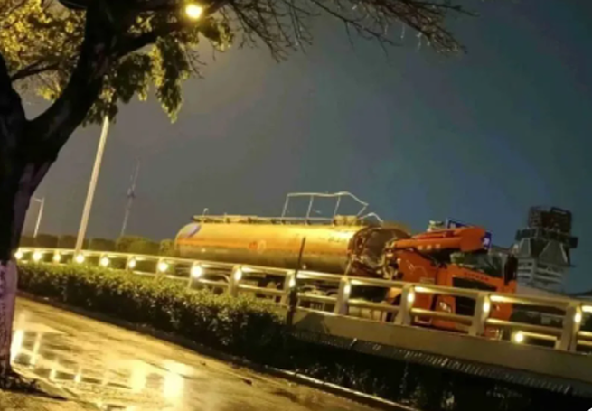 突發!福建廈門一油罐車被撞破,汽油泄漏!