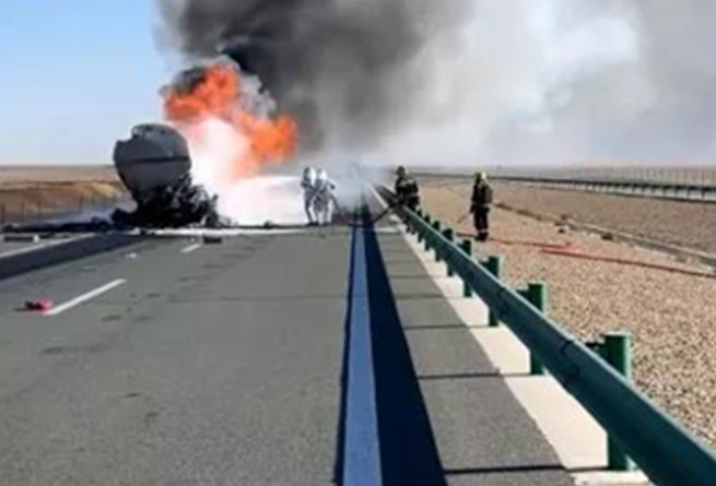 11月14日8時26分,G7京新高速1872公里(內蒙古往新疆方向)處發生一起車輛追尾起火事故。接到警情后,甘肅酒泉消防部門立即出動3輛消防車和12名指戰員前往處置。消防救援人員到達現場,公安交警部門已對事故路段進行交通管制,經偵查,一輛載有航空煤油的油罐車追尾一輛載有變壓器的貨...