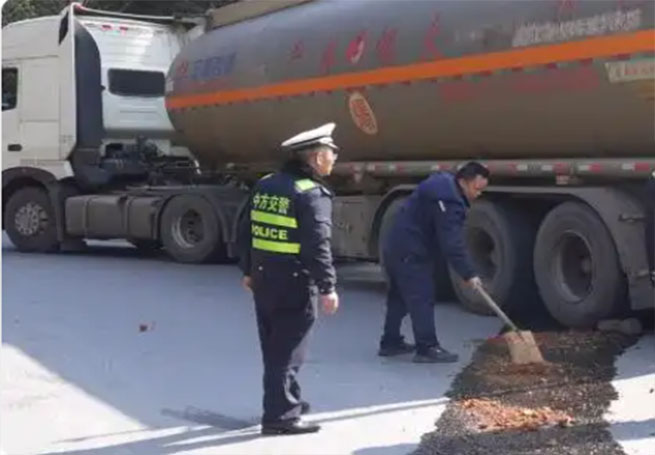 2月4日,湖南G320國道雞公界路段,中方縣公安局交通管理中心民警正在緊急處理一起因油罐車熄火停滯、汽油滲漏引發的交通堵塞。事發時,油罐車因坡度較大熄火停滯,汽油滲漏,情況危急。發現險情后,現場民警迅速行動,立即設置警戒區域,疏散周邊車輛和群眾,同時啟動應急預案,對現場實施交通管...