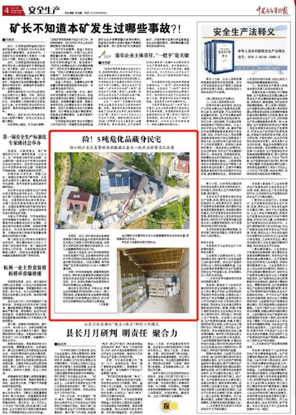10月14日,《中國應(ying)急管理(li)(li)報》第4版刊發報道《險!5噸危化品(pin)藏身民宅 浙江桐廬縣應(ying)急管理(li)(li)局(ju)順(shun)藤摸瓜查(cha)處一起非(fei)法(fa)經營危化品(pin)案》一文(wen)。全文(wen)如下(xia): 2021年10月14日(ri),浙江(jiang)桐廬(lu)縣應急管理局根據日(ri)常執法檢(jian)查中發現(xian)的線索對轄區內某化工有(you)限公司開展(zhan)突擊檢(jian)查,發現(xian)該公司所在民宅的輔房內存放槍水、55%工業(ye)氫氟酸等危化品共5噸。 經(jing)執法人員查實,該公司未取得危險(xian)化學品經(jing)營許可證,且該儲存場所安(an)全條件不符合《危險(xian)化學品經(jing)營企業安(an)全技(ji)術基本要(yao)求》的規(gui)定,一旦(dan)發生(sheng)事故,將可能導致廠區(qu)及周邊居民區(qu)200余人中毒(du)的嚴重(zhong)后果。 為第一時間消除隱患(huan),保障(zhang)周圍居民的(de)安(an)全(quan),桐廬縣應急管理(li)局當晚就(jiu)對該(gai)(gai)批危險化學(xue)品(pin)依法進(jin)行(xing)扣押(ya)并轉移至安(an)全(quan)場(chang)所(suo)。次日(ri),該(gai)(gai)局以涉嫌非法經營危險化學(xue)品(pin)對涉事企業(ye)立案調查。 通過多次走訪取證、專家論證,涉事企業因涉嫌違反《刑法》第134條之一第三項的規定,該案被桐廬縣應急管理局根據行刑銜接工作機制移送公安機關,后公安機關以涉嫌危險作業罪進行立案偵查。