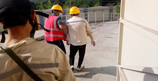 倉管員發(fa)現險情及現場處置人員中(zhong)毒,將中(zhong)毒人員扶至安(an)全區(qu)域。