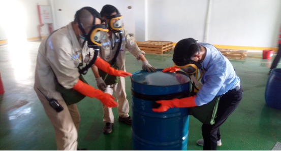 2、在應急演練(lian)處(chu)置(zhi)過(guo)程中(zhong),倉儲(chu)部作(zuo)為應急救援的主(zhu)力軍,處(chu)置(zhi)動作(zuo)迅速、到(dao)位(wei),對防毒面(mian)具的穿戴掌握熟練(lian)。