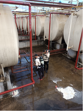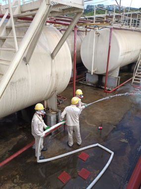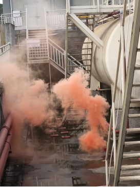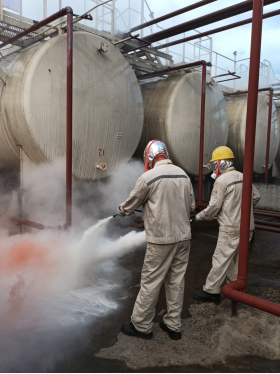 火勢撲滅后,堵(du)漏組佩戴空氣呼吸器進入現場將泄(xie)漏點前閥門關閉,消除泄(xie)露源。