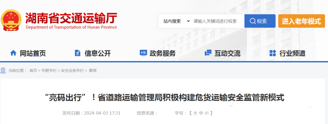 為進一步提升全省危險貨物道路運輸安全全過程監管水平,持續深化安全生產信用體系建設,湖南省道路運輸管理局擬融合企業安全生產主體責任落實、智能監管、誠信考核等數據,實現危險貨物道路運輸行業“亮碼出行”,建立事前研判、事中干預、事后閉環的危險貨物道路運輸管理新模式,即在全省危貨運輸領域推行企業、車輛和從業人員動態信用評價。