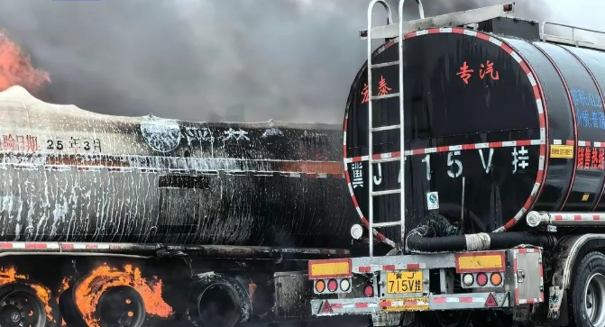 4月19日上午,天津市濱(bin)海(hai)新區秦濱(bin)高(gao)速臨港收費站出口有(you)兩輛罐車發(fa)生交(jiao)通事故后(hou)起火。經(jing)偵察,現場(chang)為一輛載有(you)潤滑油的罐車與一輛載有(you)柴油的罐車相撞,造成兩輛罐車起火。