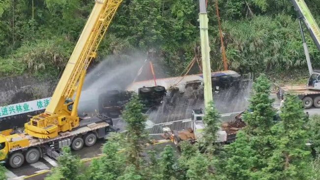 6月3日凌晨5時(shi)許,湖南藍山縣一(yi)輛裝載液化石油氣(qi)的重型半掛牽(qian)引車在行駛至G537線南風坳路(lu)(lu)段時(shi)發生(sheng)側(ce)翻,情(qing)況非常危險。事故現場,在G537線南風坳路(lu)(lu)段,一(yi)輛湘M牌照的槽罐(guan)車側(ce)翻于交(jiao)通干(gan)道彎道處,罐(guan)體內(nei)裝載約有(you)25噸(dun)液化石油氣(qi),一(yi)旦罐(guan)體發生(sheng)泄露,將威脅到周圍幾公里(li)內(nei)群(qun)眾的生(sheng)命安全(quan)。 根據現(xian)場情況(kuang),立即成立了現(xian)場指揮部,劃(hua)定警戒(jie)區(qu)域,對(dui)(dui)警戒(jie)范圍內(nei)(nei)的(de)人(ren)員(yuan)進行疏散,并對(dui)(dui)G537所(suo)城至(zhi)南(nan)風坳路段實施交(jiao)通管制,保(bao)(bao)障(zhang)救援通道暢通。中午12時10分許,在確(que)保(bao)(bao)現(xian)場無氣體(ti)(ti)泄漏后,吊(diao)裝(zhuang)作業組(zu)對(dui)(dui)槽罐車(che)實施扶(fu)正作業。經(jing)過13個小時全(quan)力救援和處(chu)置,順利完成了槽罐車(che)側翻(fan)現(xian)場清理和安全(quan)評估工作,G537線南(nan)風坳路段也于19時恢復通行。截至(zhi)4日凌晨2點,槽罐車(che)被安全(quan)轉移至(zhi)所(suo)城液化氣站,并將(jiang)罐體(ti)(ti)內(nei)(nei)的(de)液化氣安全(quan)卸載,險情得到解除。